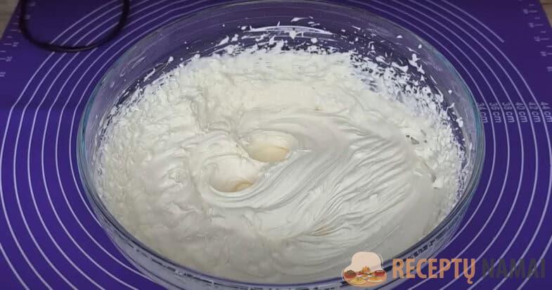 Grietinėlę ir kondensuotą pieną išplakiau mikseriu iki purumo.