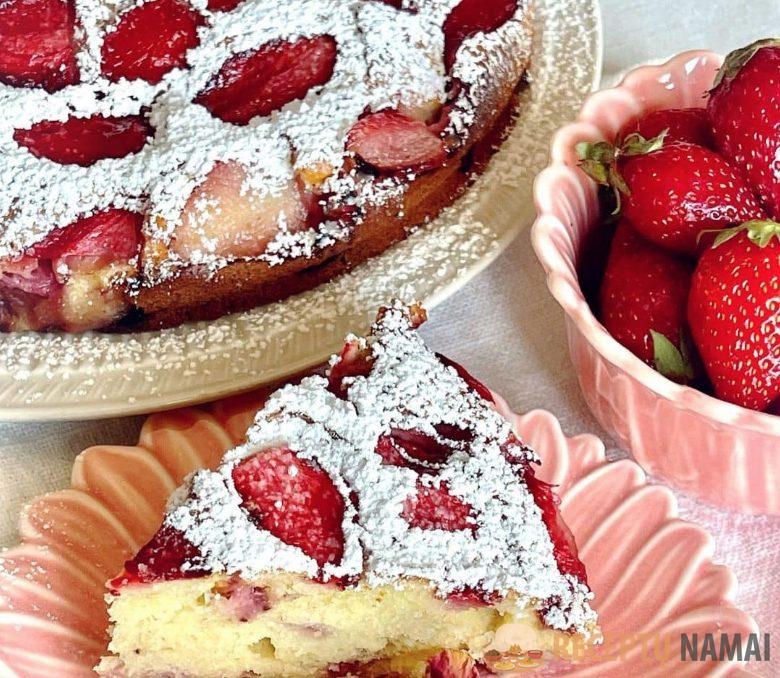 Prieš patiekdami pyragą apibarstykite cukraus pudra.