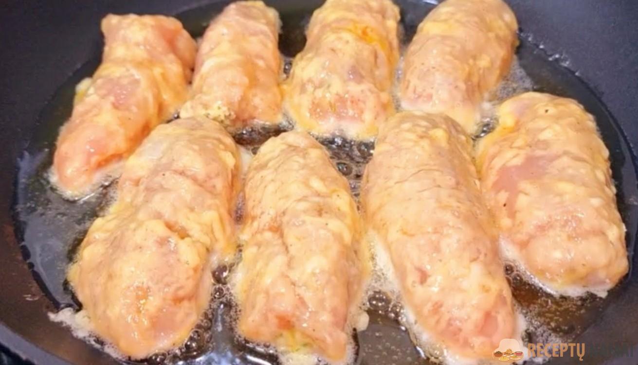 Vištienos krūtinėlę supjaustykite nedideliais, ne storesniais nei cm storio sluoksniais