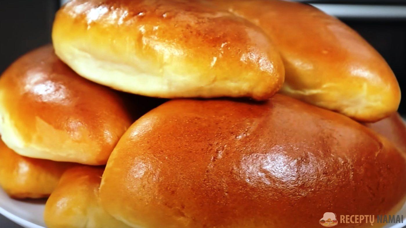 Suktinukus iškočiokite į plokščius pyragėlius plonais kraštais ir storu viduriu