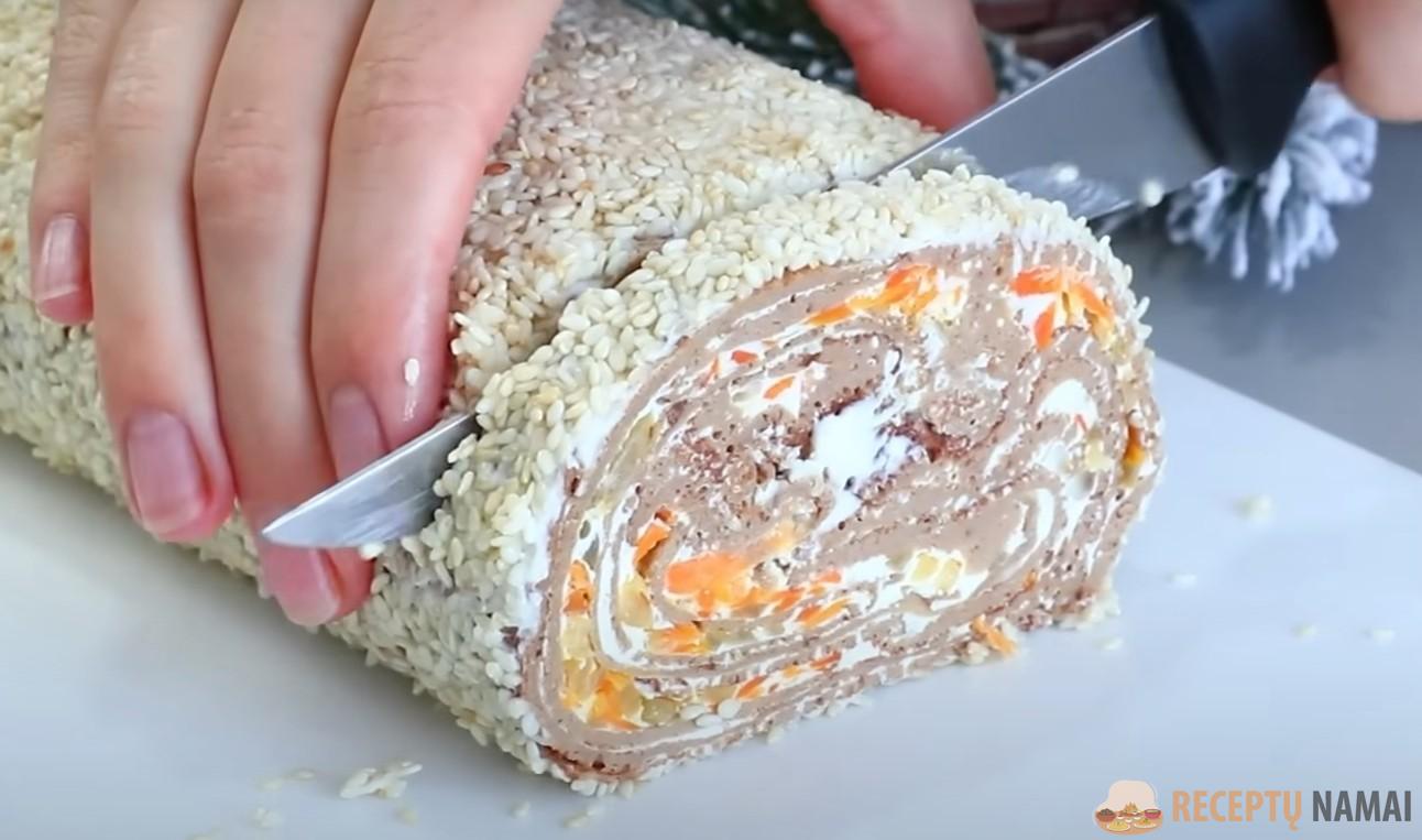 Susukite ritinėlį ir valandai padėkite į šaldytuvą
