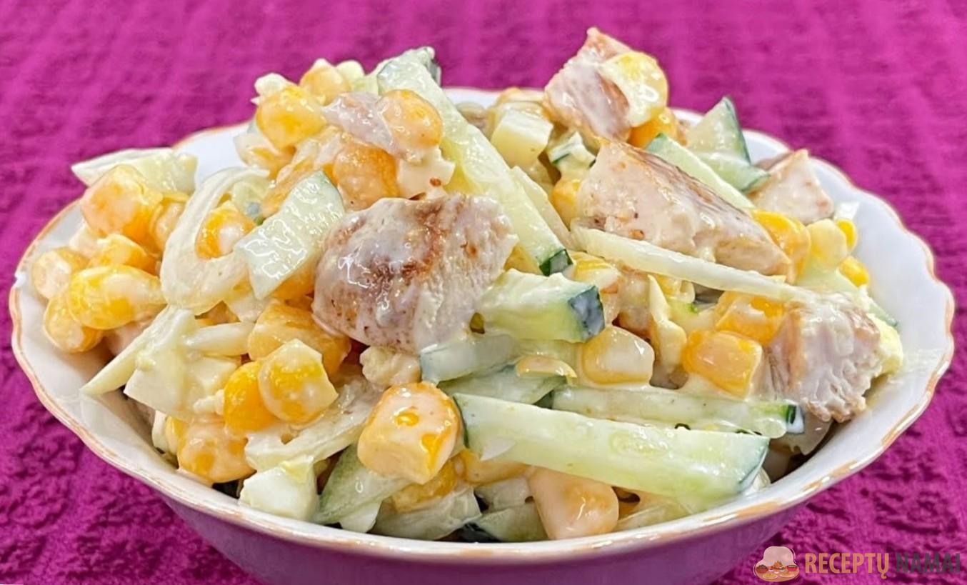 Gaunasi skanios salotos iš krabų lazdelių. Tai puikus būdas paruošti naujas salotas šventei.
