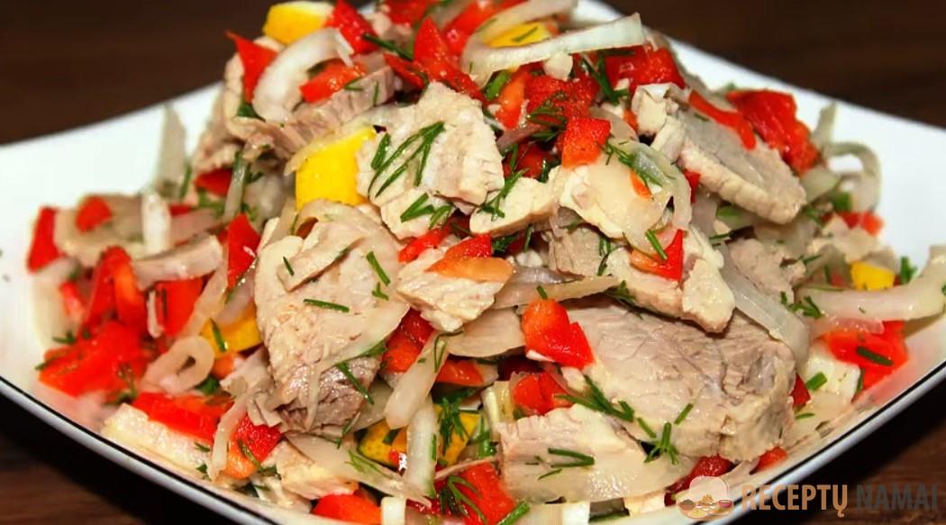 O jei mėsa jau išvirta, visas paruošimas užtruks 10 minučių. Sumaišę ingredientus, duokite salotoms vieną valandą pastovėti.