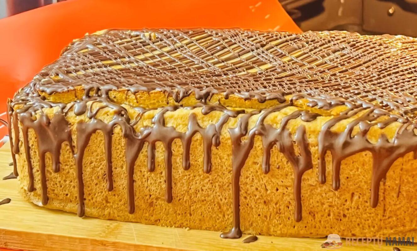 šiek tiek nusistovės. Pyragą galite papuošti ištirpintu šokoladu arba cukraus pudra.