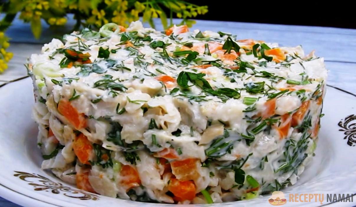 Gausite paprastas, bet skanias salotas. Šis patiekalas bus geras užkandis ant šventinio stalo.