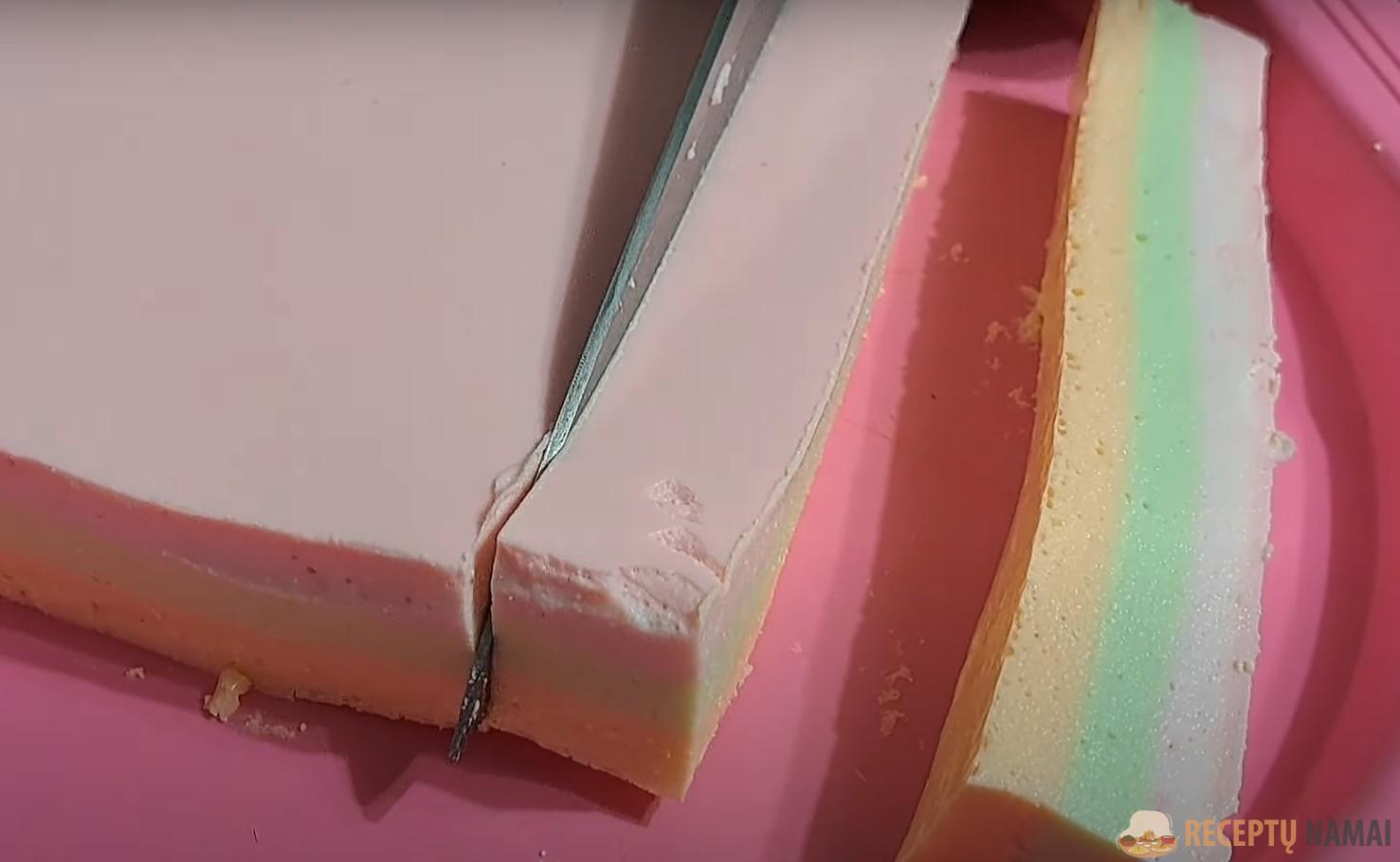 Kremui varškę sumaišykite su grietinėle ir kondensuotu pienu, plakite iki purios masės ir standžių viršūnių.