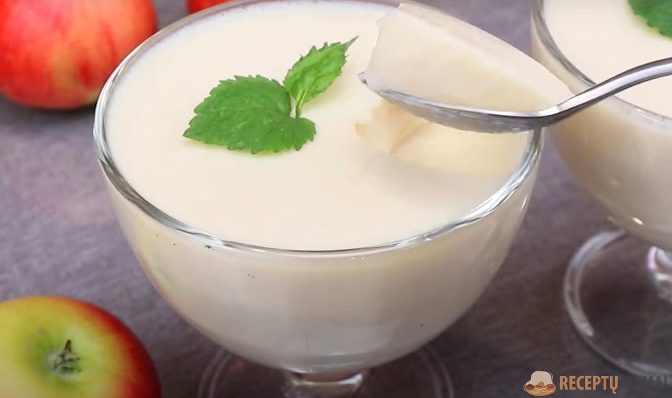 Į šaltą pieną reikia persijoti miltus, išminkyti tarsi tešlą. Į tešlą supilti augalinį aliejų, ingredientus išmaišyti.