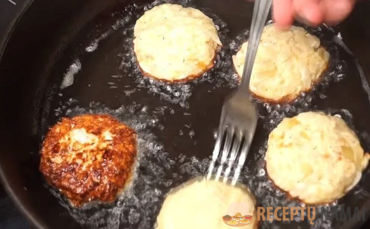 Suformuokite kotletus ir kepkite keptuvėje su aliejumi iš abiejų pusių ant vidutinės ugnies, kol gražiai apskrus.