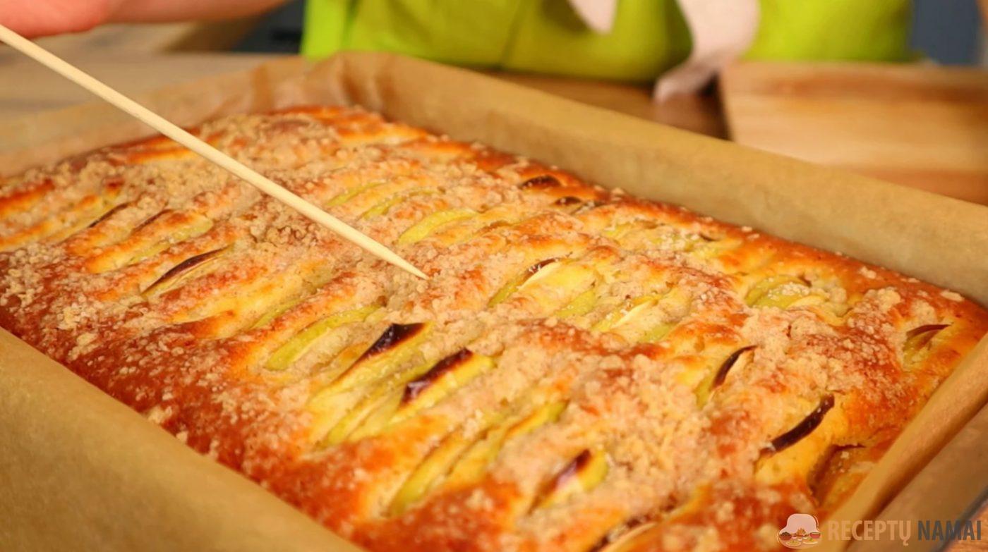 . Taip pat galite apibarstyti trupiniais (cukrus, miltai ir sviestas trinami rankomis arba trintuvu) arba tiesiog cukrumi ir cinamonu.