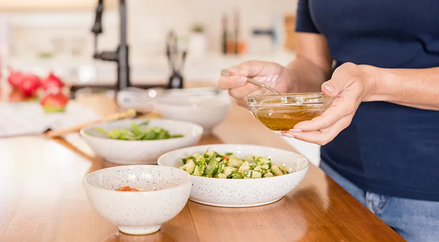 Obuolių sidro actas – puikus salotų padažas. Susmulkinkite baltagūžius kopūstus, morkas, obuolį, susmulkinkite žalumynus, pagardinkite augaliniu aliejumi ir actu – vitaminų bomba paruošta! Tuo pačiu padažu galima pagardinti pomidorų, agurkų, paprikų ir svogūnų salotas.