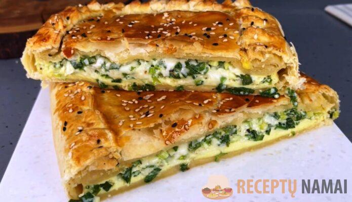 Gausite gražų sluoksniuotą pyragą su bulvėmis. Tai puikus įprastų pyragėlių pakaitalas.