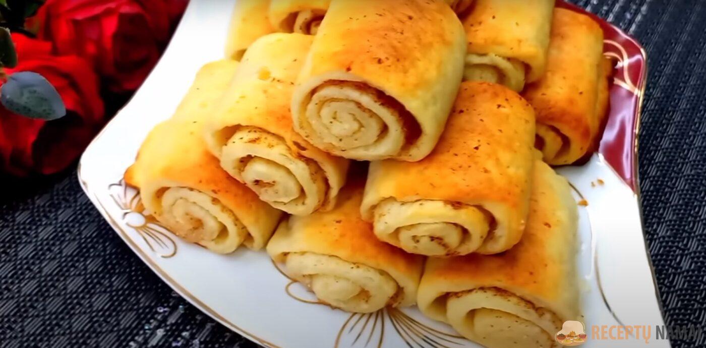 Kepdami sluoksnį galite pabarstyti cinamonu ir granuliuotu cukrumi. Taip kepiniai taps aromatingesni ir saldesni.
