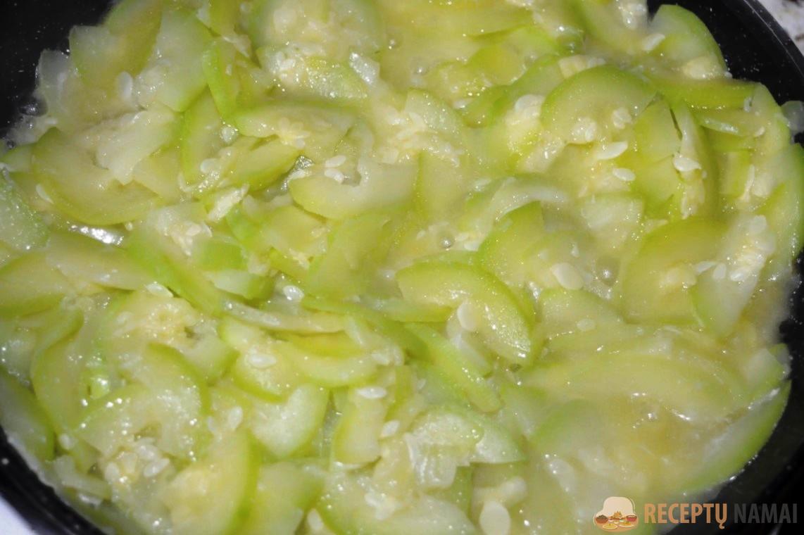 Net jei turite jaunas cukinijas, vis tiek pašalinkite sėklas, nulupkite odelę.