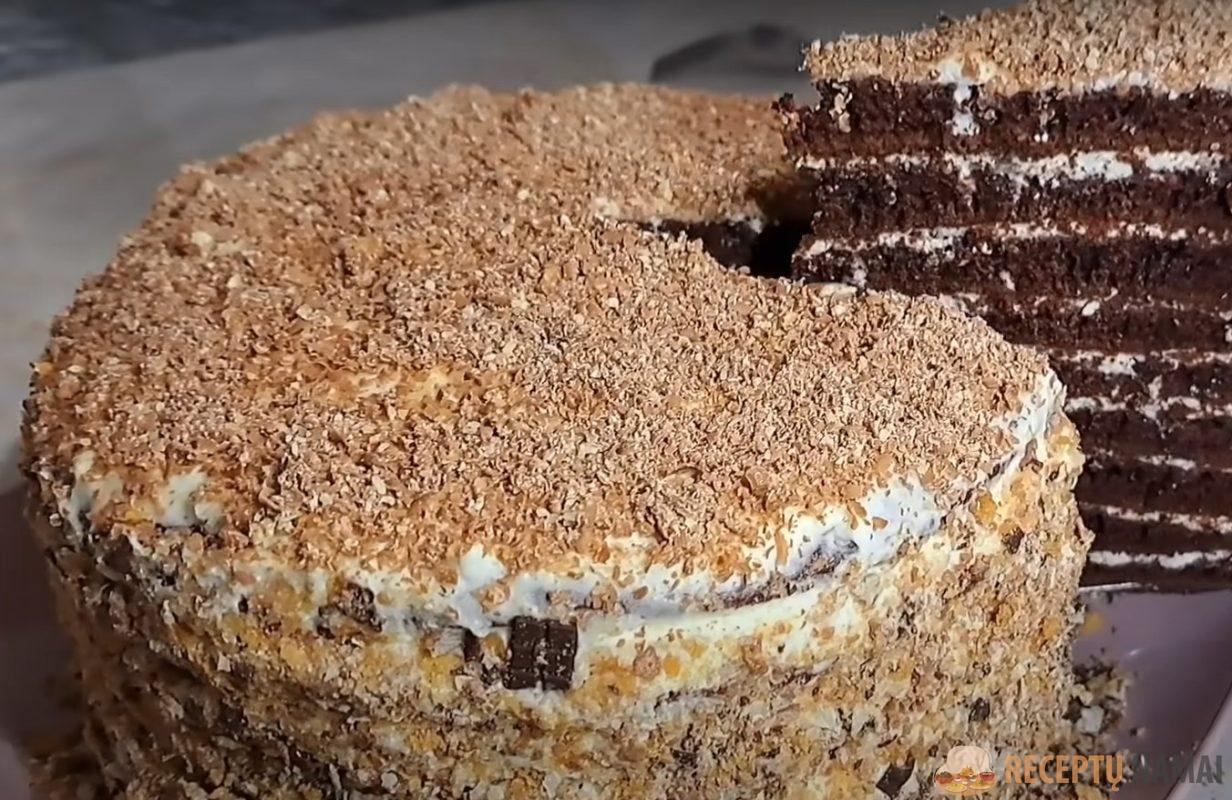 tortą. Kremu aptepkite torto šonus ir, jei norite, apibarstykite kapotu šokoladu.