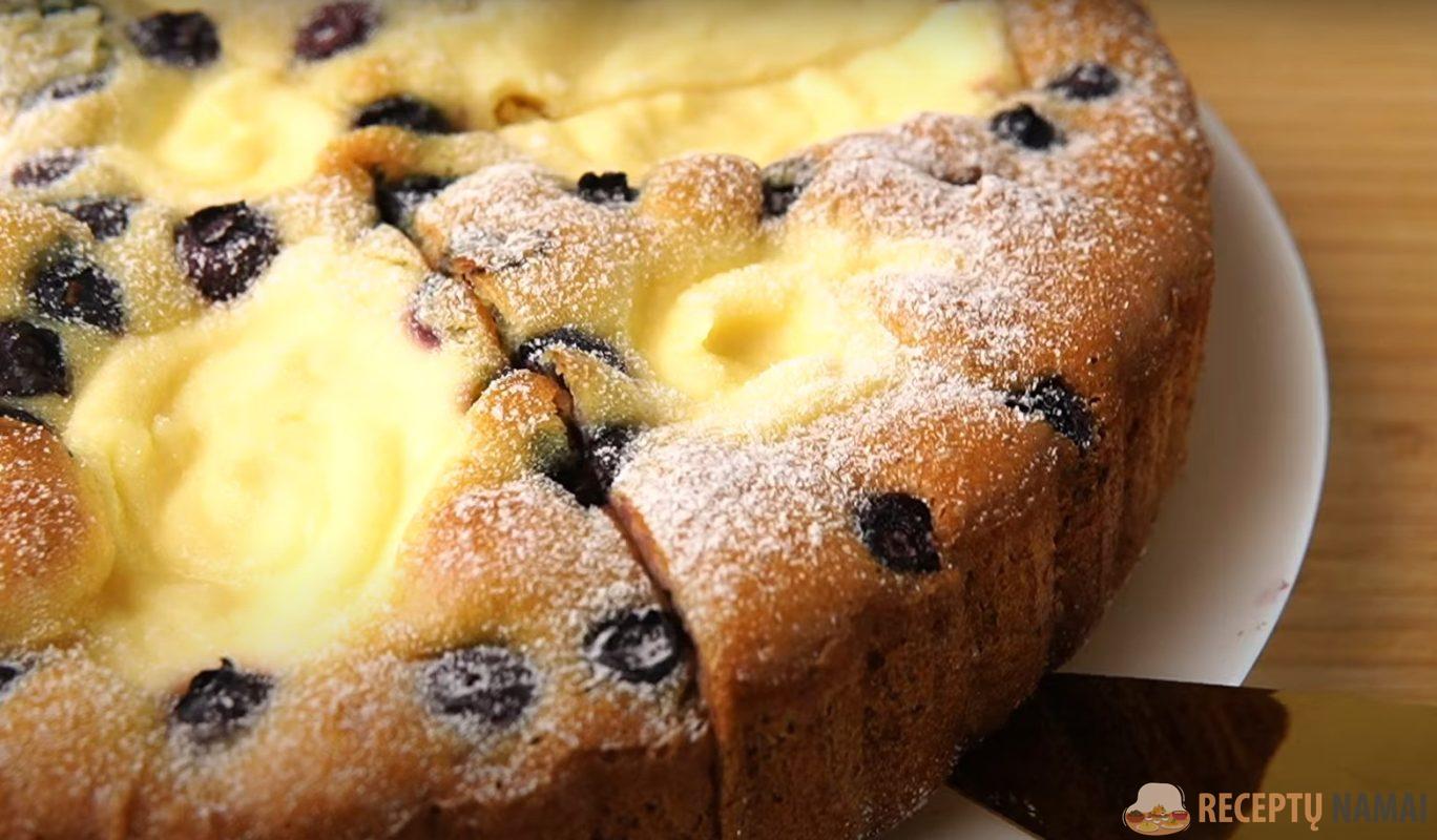 Gausite gardų naminį mėlynių pyragą arba keksą. Papuošimui galima pabarstyti cukraus pudra.
