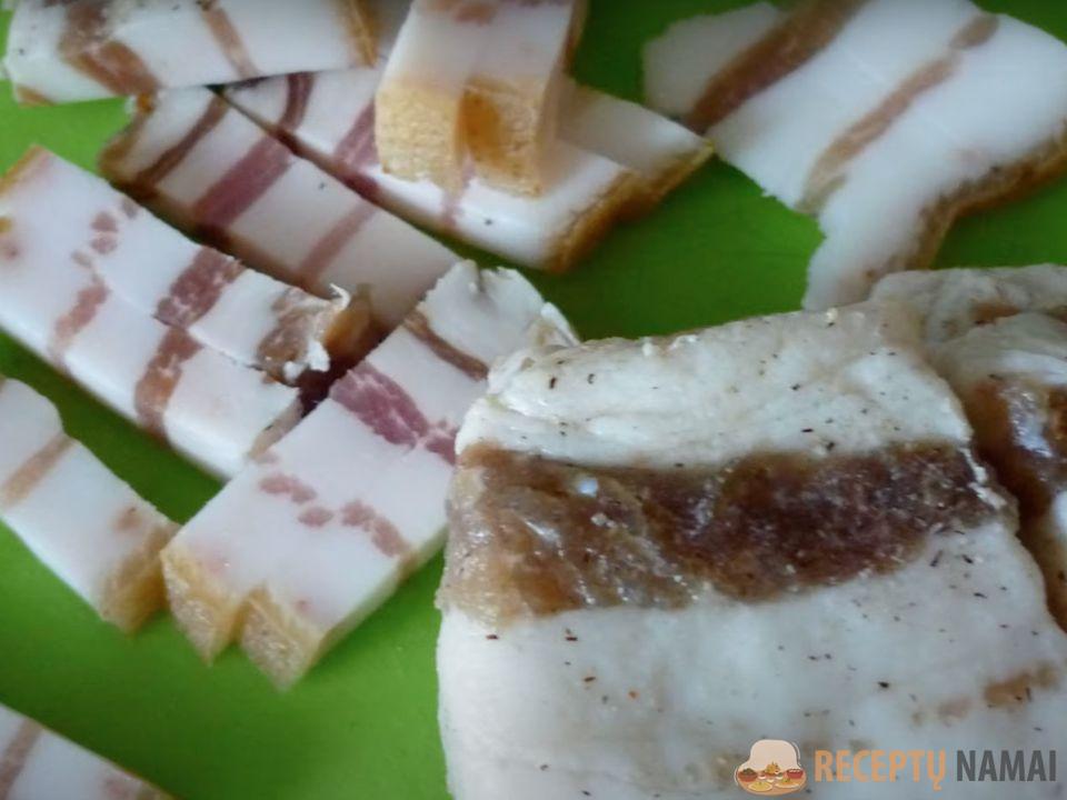 Norėčiau šiek tiek pasakyti apie kiaulinių taukų pasirinkimą – optimalus storis yra bent 5–6 cm. Jų galite rasti iš privačių pardavėjų arba turguje. Parduotuvėje parduodami griežinėliai dažnai būna ploni ir neaiškios kilmės. Kiauliniai taukai taip pat turėtų būti minkšti – aš turguje paprašau peilio ir įsmeigiu taukus arčiau odelės – jei peilis lengvai įsminga – lašiniai geri, jei ne – jie gali būti kieti net ir sūdyti.
