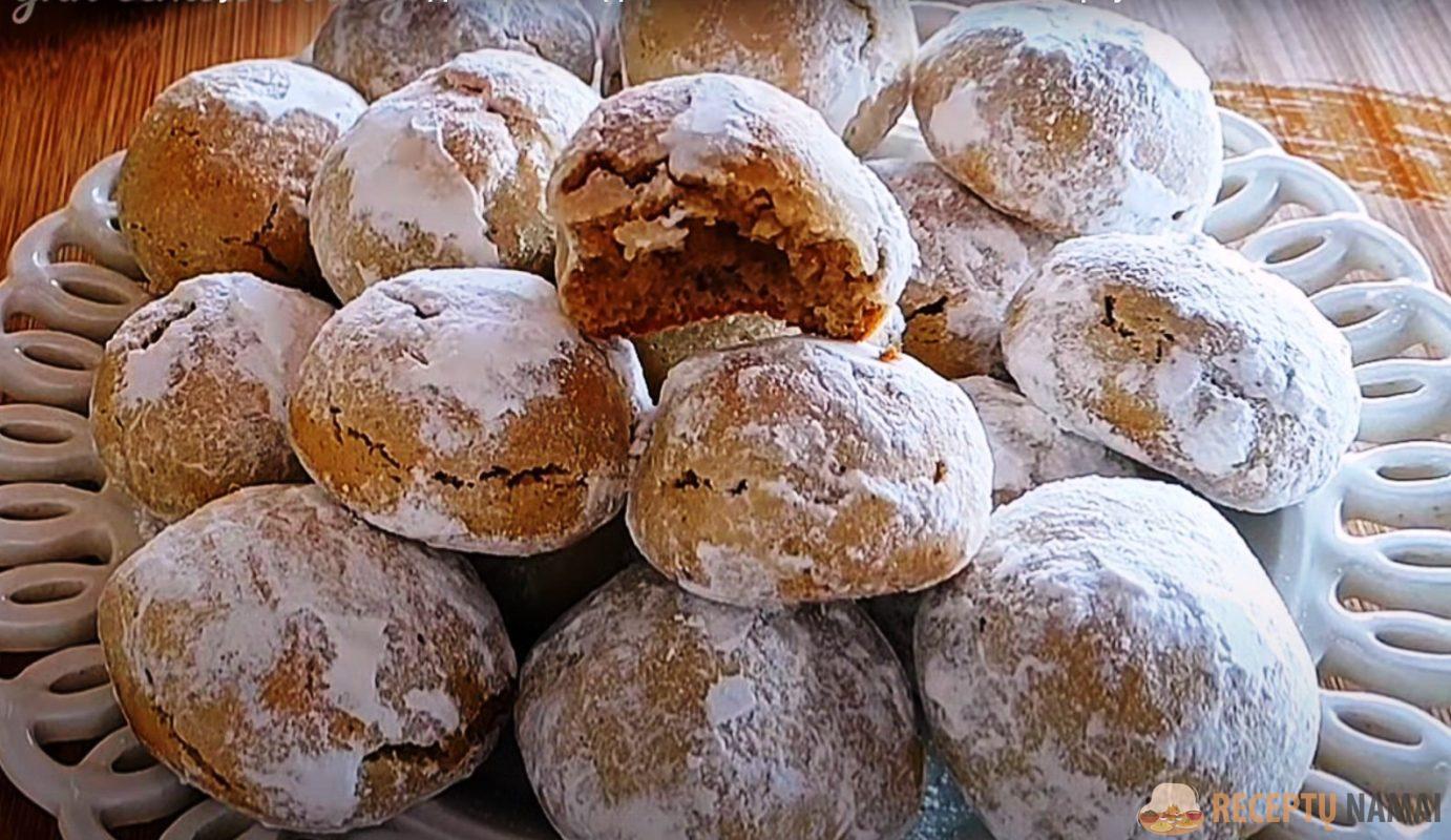 Iškepusius sausainius verta apvolioti cukraus pudroje. Tai skanūs ir paprasti sausainiai Naujiesiems metams ar Kalėdoms.