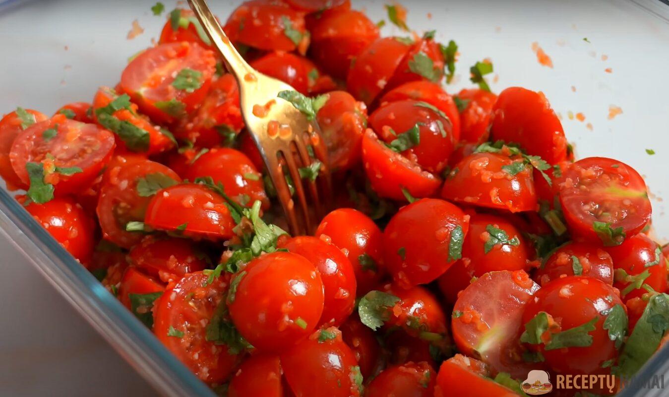 Palikite pomidorus marinuotis šaldytuve 15 minučių.