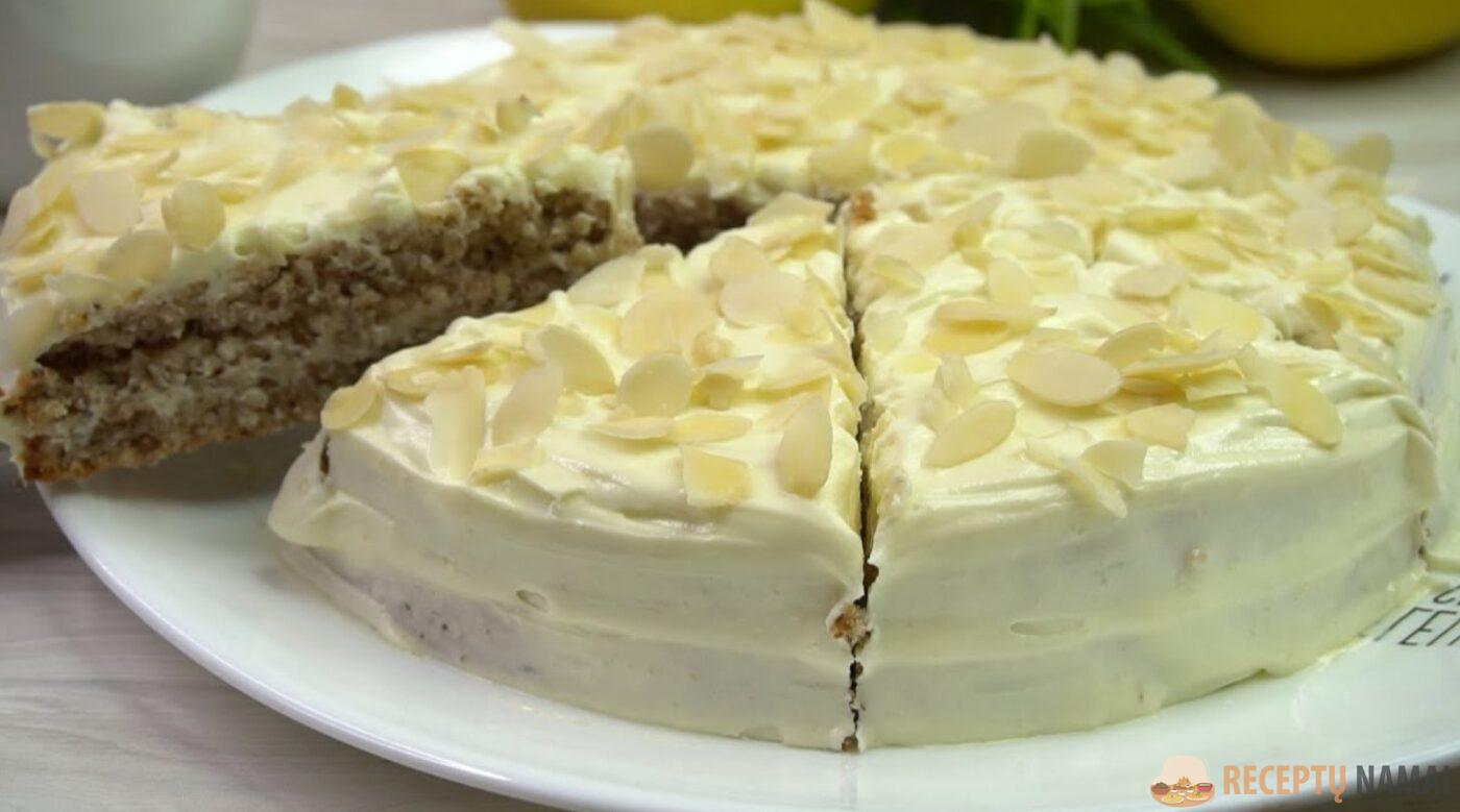 Migdolų pyragas ruošiamas be miltų. Baltymų plutelės su migdolų riešutais būna traškios, saikingai saldžios. Pyragas su klasikiniu kremu, papuoštas migdolų žiedlapiais.