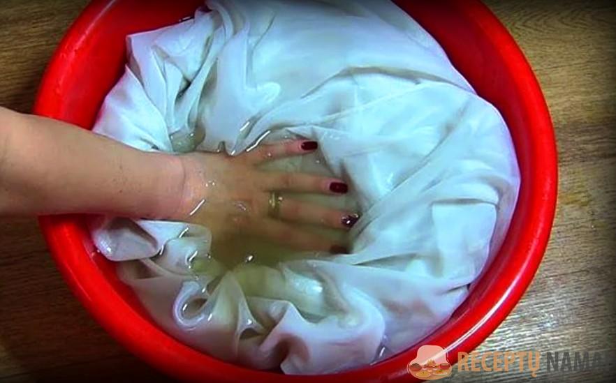 Pirmiausia tiulį pamirkykite tiesiog šiltame vandenyje 10 minučių. Taip nusiplaus visos dulkės. Vieną kartą nuplaukite švariame vandenyje