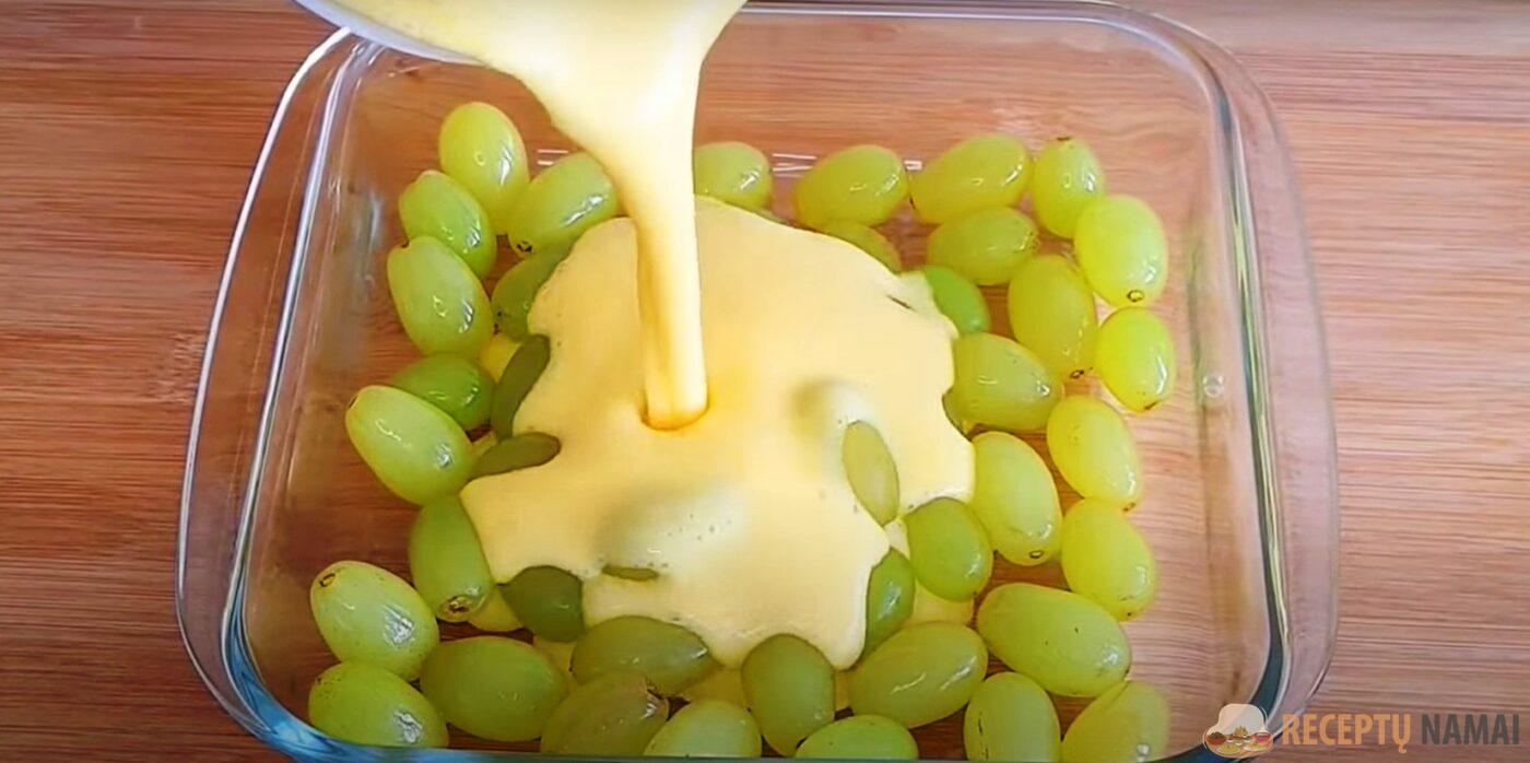 formą ant dugno dedame sluoksnį vynuogių