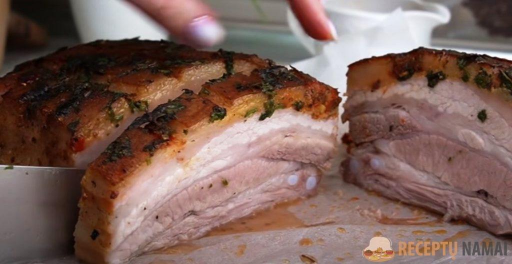 . Šiuo padažu aptepame mėsos viršų ir kepame toliau.