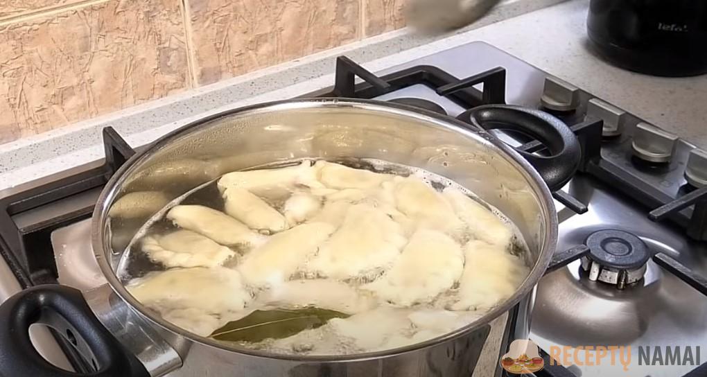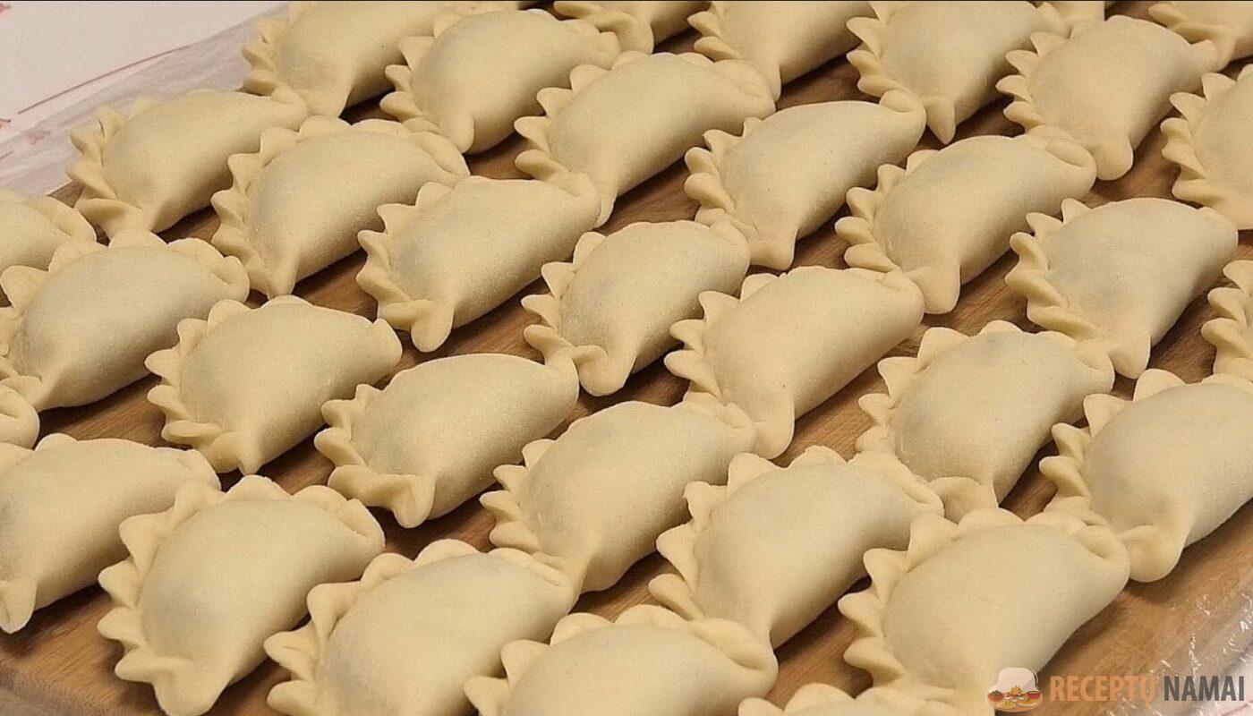 Suformuokite koldūnus su įdaru ir išvirkite juos pasūdytame vandenyje.
