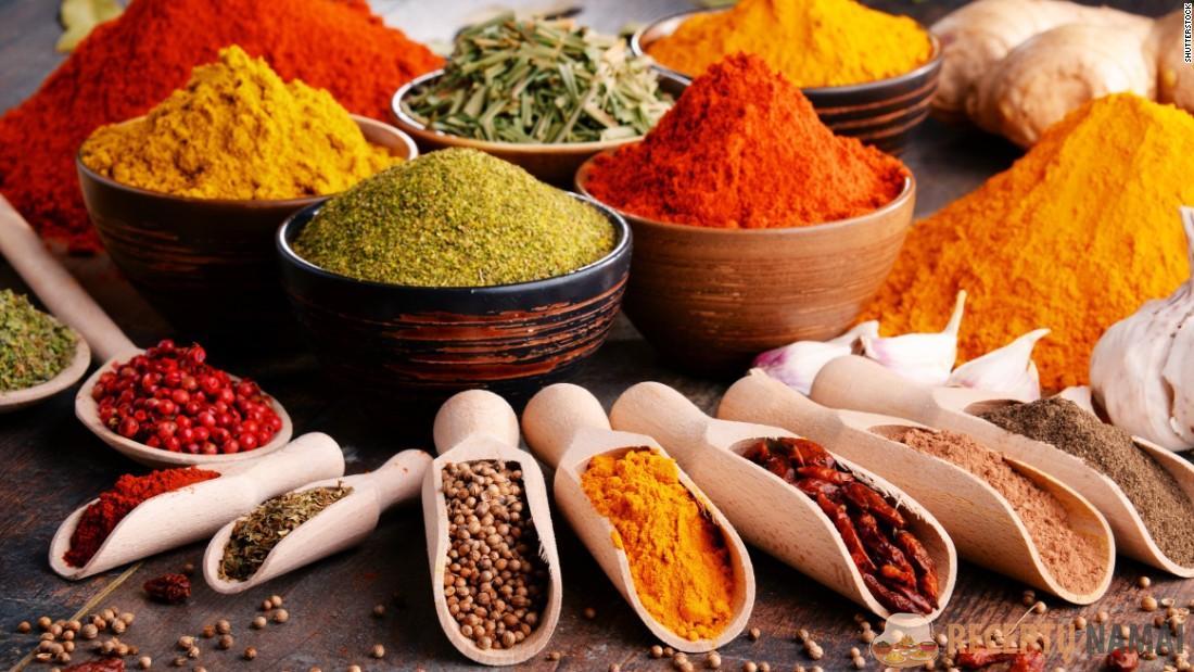Raudonieji pipirai, imbieras, ciberžolė, kalendra, garstyčios, kardamonas, kmynai, juodieji pipirai, kvapieji pipirai, muskatai, gvazdikėliai.