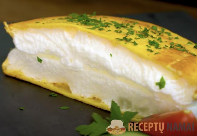 Šis pagalvinis omletas nėra toks, kokį esame įpratę matyti – jo plutelė geltona, o vidus labai minkštas. Šefai jį patiekia restoranuose, bet mes pasidomėjome receptu ir pasigaminsime namuose. Svarbiausias skirtumas yra tas, kad skirtingai nei įprastame omlete, pagalvėliniam omletui baltymus ir trynius gaminsime atskirai.