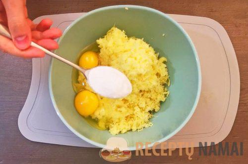 Šio patiekalo receptas labai paprastas, bet jums turėtų patikti. Viskas dėl to, kad jis labai paprastas, o zrazai gaunasi puikūs. Jums tereikia išvirti tris bulves. Tada jas atvėsinti ir nulupti. Tada jas sutarkuoti smulkia tarka. Į gautą masę įmušti 2 kiaušinius, įberti 3 valgomuosius šaukštus miltų, įberti juodųjų pipirų ir druskos pagal skonį. Viską išmaišykite, kad gautųsi vientisa masė. Dėl skonio galima įberti žolelių. Lengviausia yra krapai, juos lengviau paskleisti ant bulvių tešlos. Taip pat galite pabarstyti Provanso žolelėmis, kad skonis būtų ypatingas.