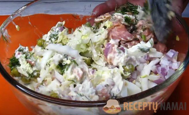 . Įdarą pasūdykite, sudėkite sviestą ir grietinėlę, išmaišykite. Įdarą palikite atskirame dubenyje, kad atvėstų.
