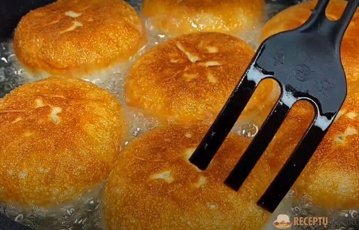 Kepkite paplotėlius keptuvėje augaliniame aliejuje, dėkite juos siūle į apačią. Kepkite, kol iš abiejų pusių taps auksinės spalvos.