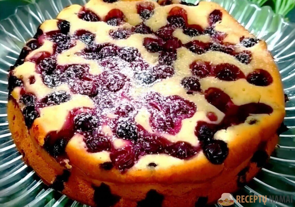 Būtent dėl šio fermentuoto pieno produkto tešla tampa minkšta ir oro. Įdaras iš vyšnių suteikia pyragui rūgštumo ir sultingumo. Receptui galima imti ir šaldytas, ir šviežias vyšnias