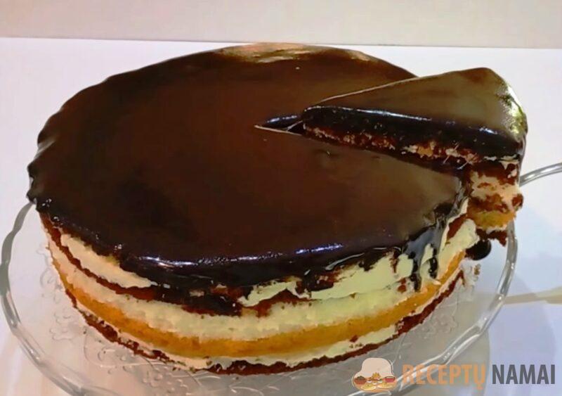 Palikite pyragą šaldytuve 8 valandoms. Gausite gardų švelnų pyragą “Paukščių pienas”.