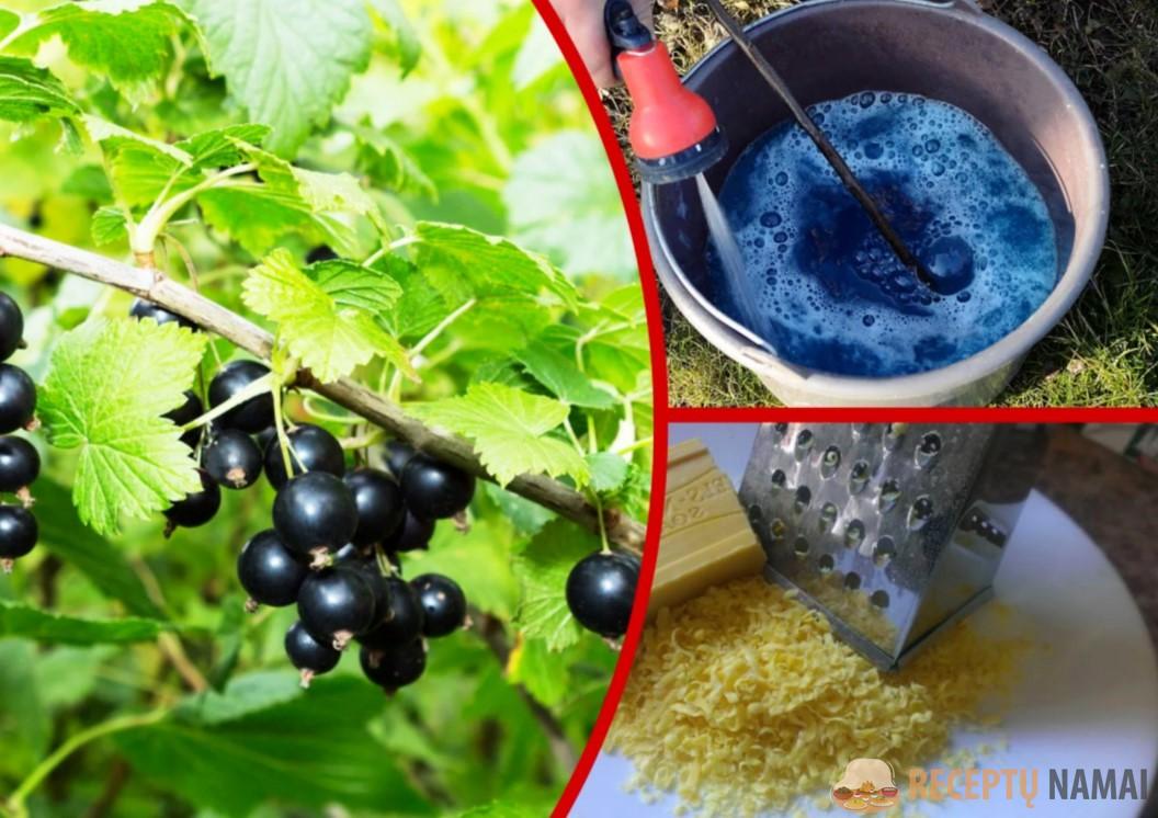 - jei liko tirpalo, dar šiek tiek praskieskite jį vandeniu ir palaistykite krūmus.