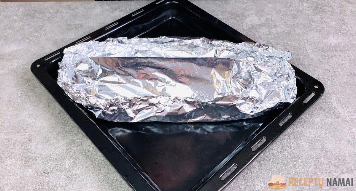 5. Kepimo skardą išklokite folija ir lengvai patepkite aliejumi.