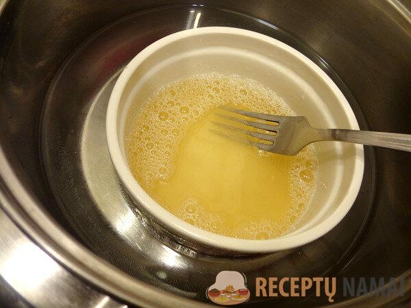 Toliau želatiną reikia kaitinti mikrobangų krosnelėje arba vandens vonelėje, kol ji visiškai ištirps.