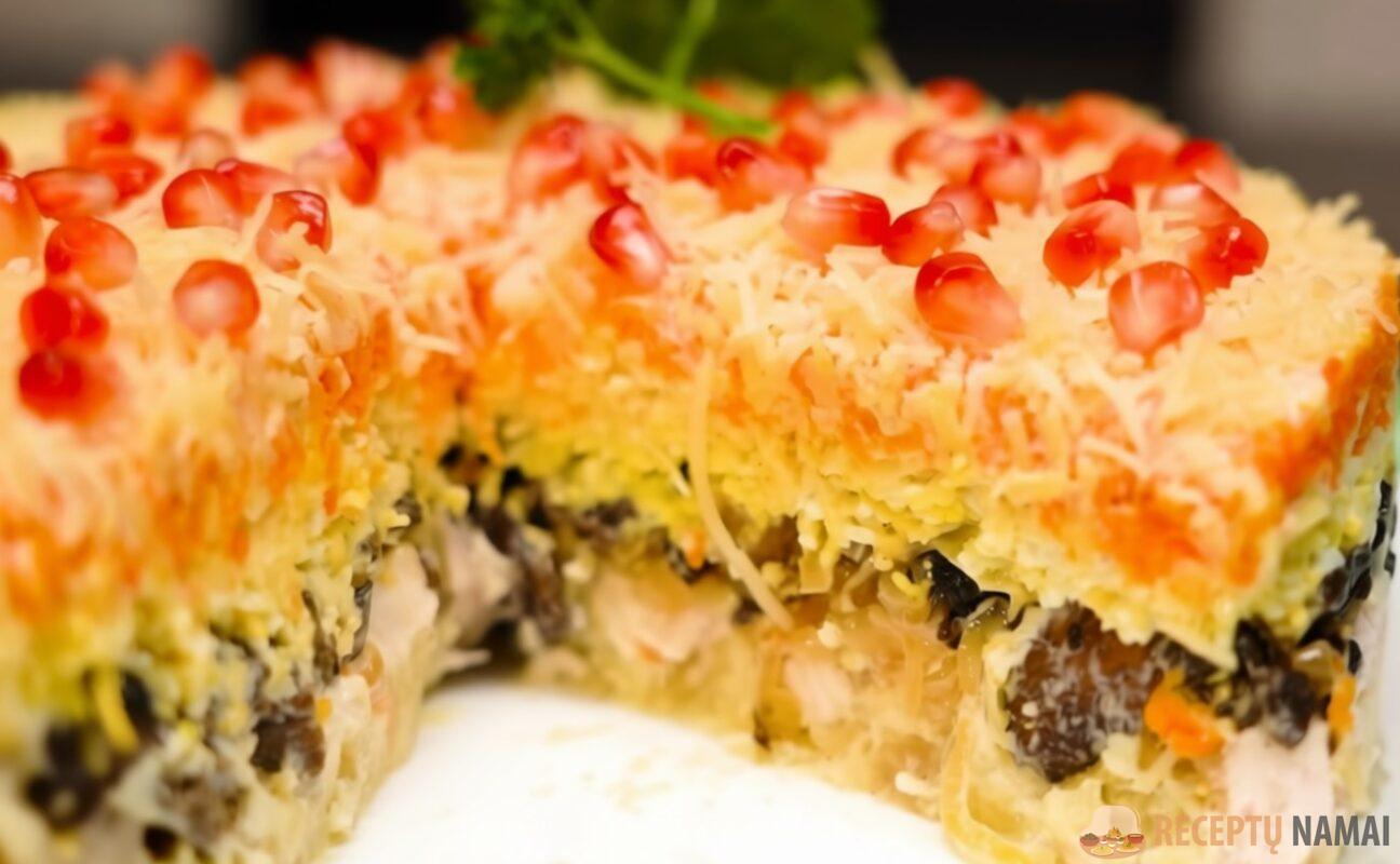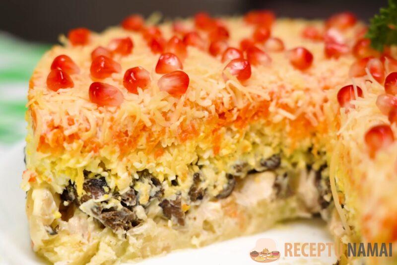 Salotas galite papuošti granatų grūdeliais ir žalumynais.