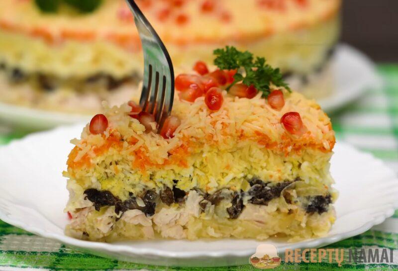 Be grožio, sluoksniuotos salotos yra labai maistingos ir skanios. Pavyzdžiui, salotos “Tatjana” galės patenkinti daugelio svečių skonio pageidavimus. Salotose yra viskas, ko reikia harmoningam skonių deriniui.