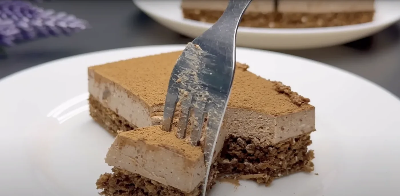 Šis dviejų sluoksnių desertas susideda iš šokolado-avižinių dribsnių pagrindo ir sūrio pieno sluoksnio ant želatinos.