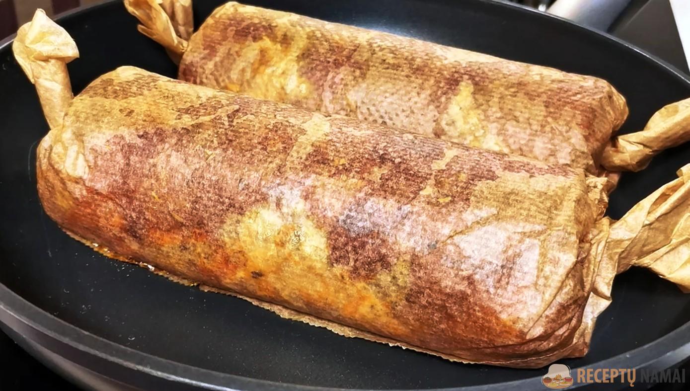Nepamirškite apversti vyniotinio, kad jis iškeptų tolygiai