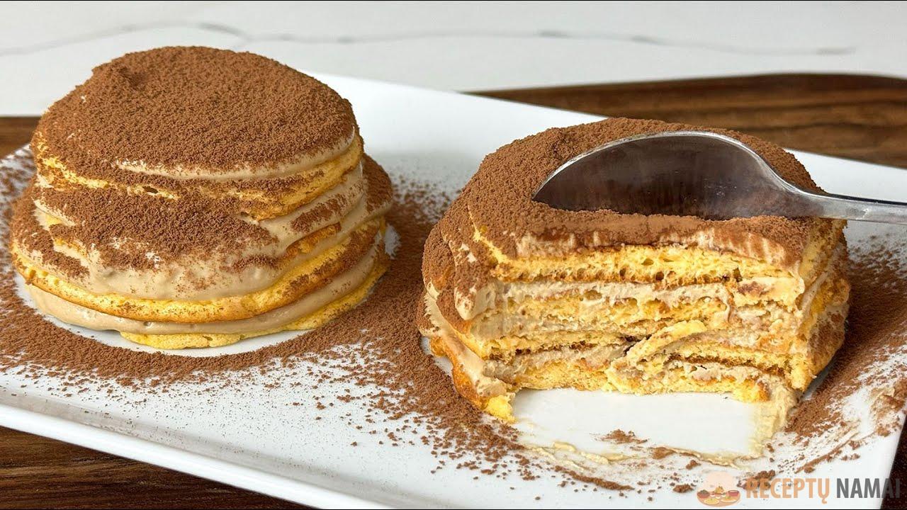 Galiausiai desertus perkelkite į šaldytuvą 1 valandai , pabaigoje visiškai apibarstykite karčiąja kakava (persijota), patiekite ir apsiginkluokite šaukšteliu.