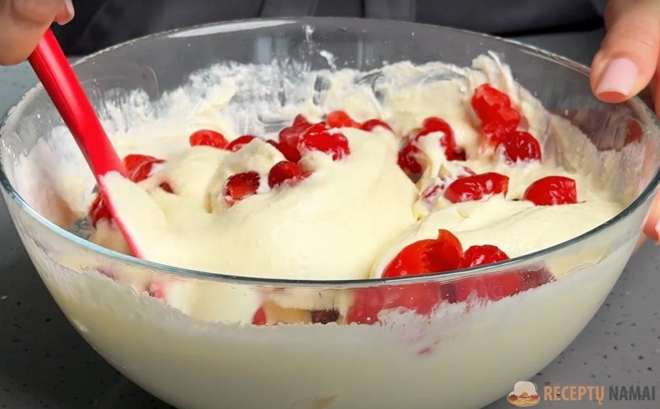 . Palikite tešlą šaldytuve, kad stabilizuotųsi.