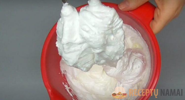Kol vėsta, įdirbu su kiaušinių baltymais – plaku juos mikseriu, kol susidarys šviesios baltos putos.