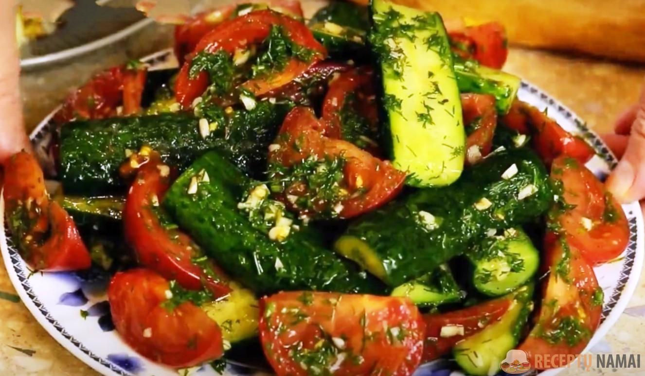 Pomidorų ir agurkų užkandžio paruošimas: