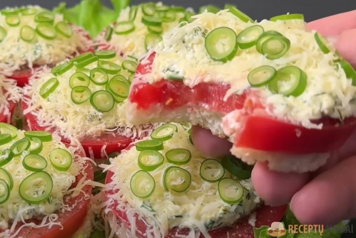 Pomidorų užkandžio su sūrio įdaru paruošimas: