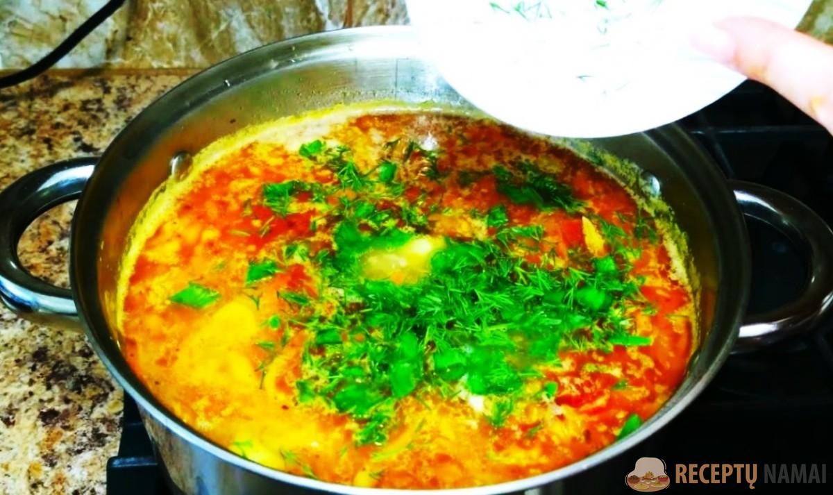 Sudėkite į sriubą, virkite po dangčiu dar 10 min. pagal skonį pasūdykite.