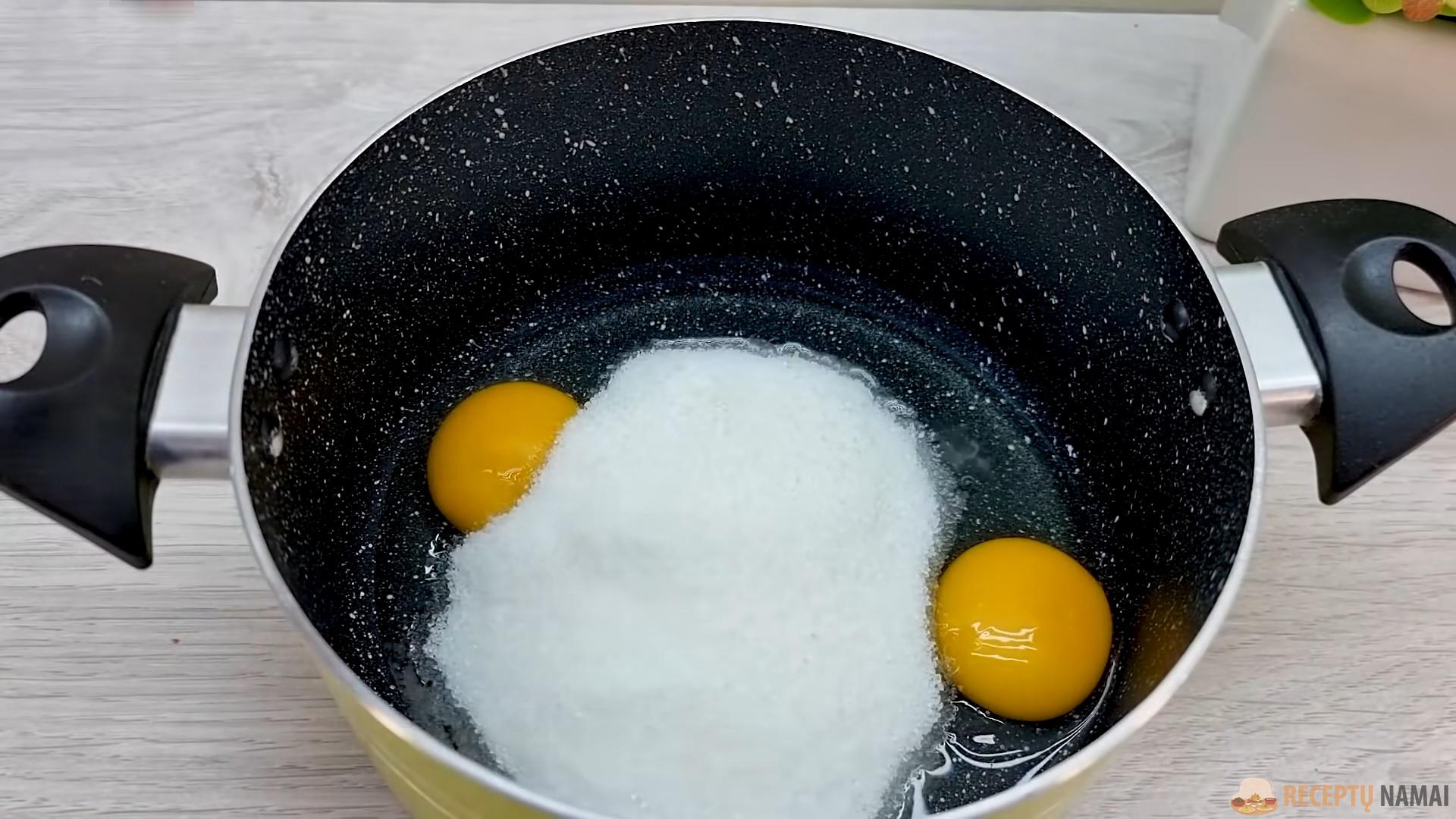 - Kremui reikalingi ingredientai: 2 kiaušiniai