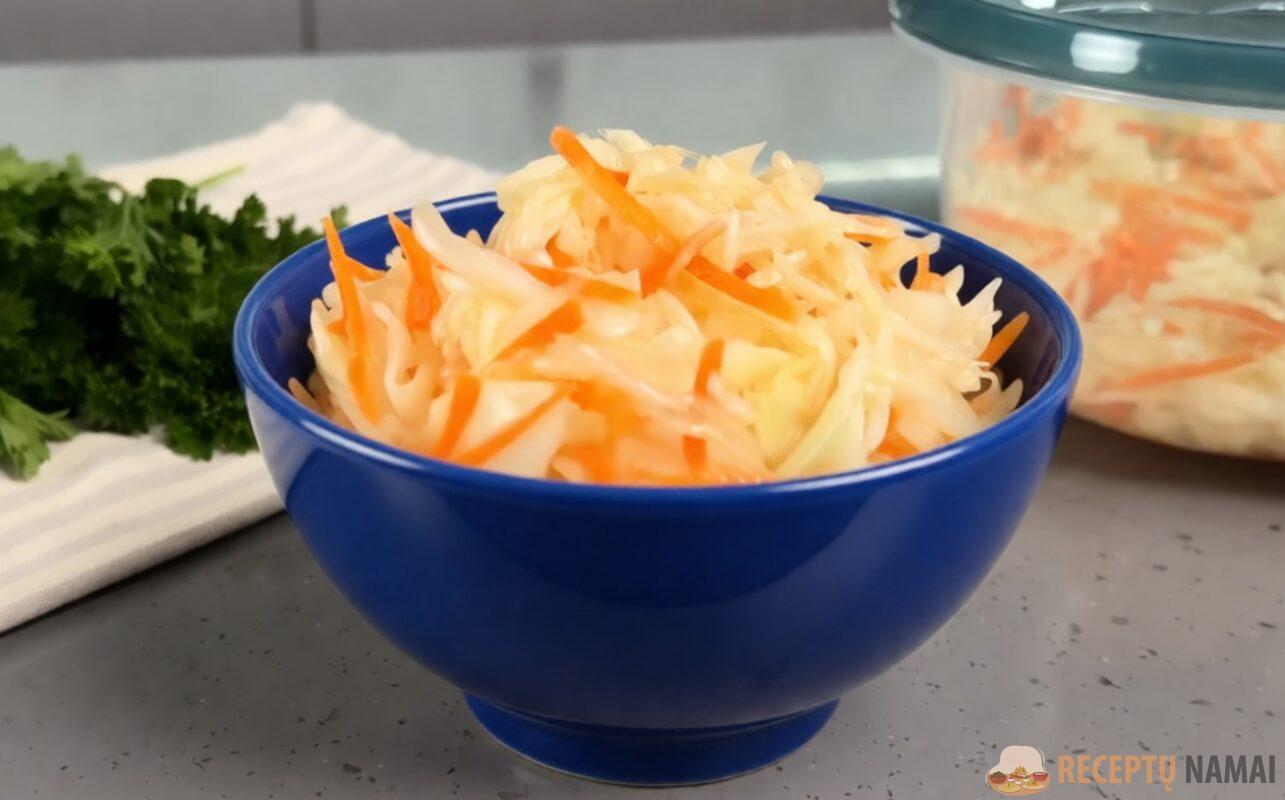 . Salotas galite palikti šaldytuve arba patiekti iš karto. Tai paprastos greitos kopūstų salotos.