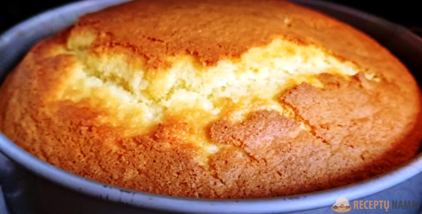 Atvėsusį biskvitą apibarstykite cukraus pudra ir patiekite prie arbatos.